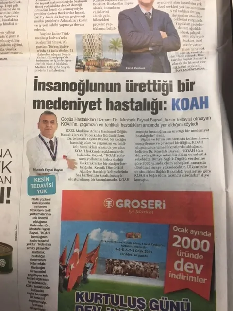 Kelimelerinin baş harflerinin alınmasıyla oluşan bir kısaltmadır. KOAH solunum yollarının ilerleyici darlığı ile karakterize kronik bir hastalıktır Solunum yollarını etkileyen sigara,tozlu ortam ve mesleksel  temas (tekstil;kömür ocağında çalışma,çimento,tezek kullanımı) gibi çevresel faktörlerle uzun süreli temas sonucunda akciğerde kalıcı bir darlık ve mukus artımı sonucu nefes darlığı oluşur.